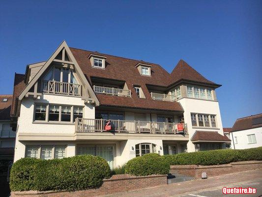 Dans une villa-résidence, vaste appartement lumineux, parfaitement situé à 50 m du Club de voile et de la plage de Duinbergen. Hall d'entrée/wc/ vestiaire- grand living lumineux- terrasse ensoleillée- cuisine équipée- salle de bain et salle de douche- garage privé.