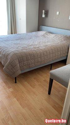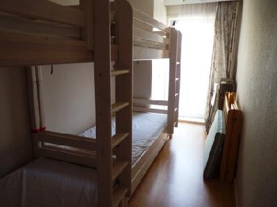 Une chambre avec grand lit double d'1,80m et une chambre avec 2 x 2 lits superposés (+ lits-tiroirs pour les plus jeunes). Canapé-lit dans le salon, matériel bébé : lit-cage bébé en bois + matelas plastifié,2 chaises hautes en bois, pot de toilette.