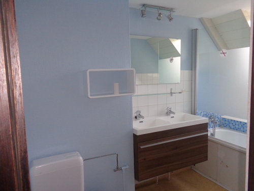 1er étage: chambre lit double et chambre 2 lits 1 personne, salle de bain, wc séparé avec lavabo.