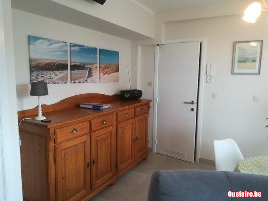 Appartement calme, avec belle vue latérale sur mer, accès direct à la digue et la plage, entièrement rénové et mis aux normes de sécurité, cuisine équipée (micro-ondes, lave-vaisselle, etc), grande chambre à coucher avec lit double (2 personnes) et divan-lit (= lit 2 personnes), wifi, couverture et couettes disponibles mais à apporter: draps de lit, taies, essuies, caution de 200€ et le montant restant à payer au plus tard 2 semaines avant le début de la location, location uniquement par semaine, arrivée le vendredi, àpd 15:00 et départ le vendredi 11:00, prix eau, électricité et gas compris, nettoyage (obligatoire) non compris 75€ - Taxe de séjour non comprise (1 euro/pers/nuit) - Animaux autorisés - Interdiction de fumer dans l'appartement - Renseignements et réservation (pour envoyer un mail, cliquez ci dessous) (0496/55 86 70)