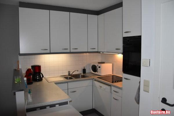 living avec cuisine ouverte et totalement équipée.(grille-pain, mixer, mo, four, lave vaisselle)