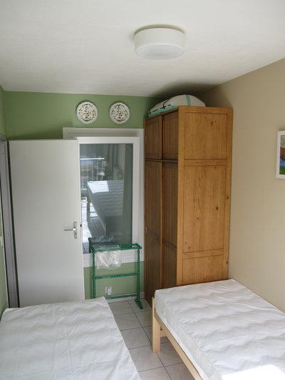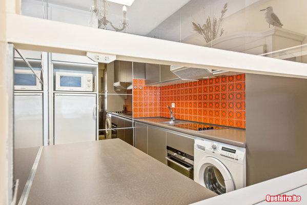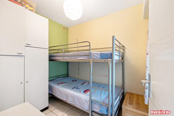 Appartement agréable au 5ème étage pour 6 personnes (max 8). Belle vue sur la mer. Une chambre avec lit 2 personnes et lavabo, une chambre avec lits gigognes soit 2 lits simples, une petite chambre aveugle avec lits superposés pour 2 pers., un sofa lit 2 pers. au living.
