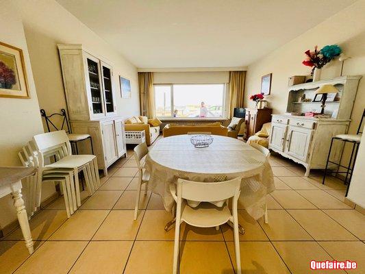 Disponible à la location Pâques & vacances d'été 2025 >> appartement rez de chaussée sur la digue a Duinbergen, 3 chambres, 2 salles de bain, 1 salle de douche, grand living salle a manger, cuisine full équipé, wifi - tv - telenet - lave linge, sèche linge, cour intérieure, tout confort … 1250€ la semaine / 2400€ la quinzaine