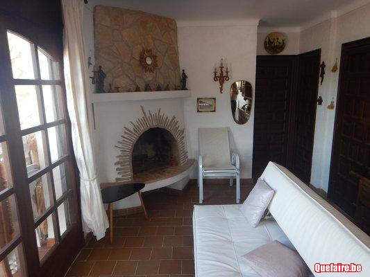 1 chambre (lit 2 pers) gr placard; 1 sdb, grand living feu ouvert, divan lit, cuisine américaine.