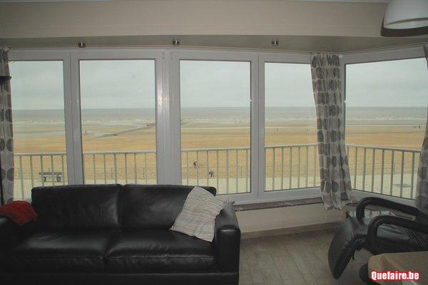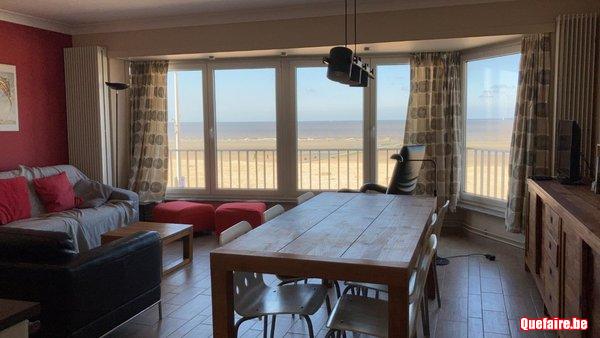 Coxyde digue, face à la mer, limite St-Idesbald, appartement moderne entièrement rénové, 3 chambres, 6 personnes, avec garage, 1er étage avec ascenseur.