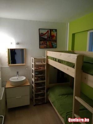 3ch./6lits: 1 ch. Avec lit double, 1 ch. Avec 2 lits jum. Et 1 ch. Avec 2 lits superposés; 2 des 3 chambres avec lavabo.