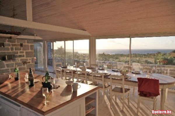 Très beau séjour avec baies vitrées ouvrant sur la terrasse, cuisine à l'américaine avec ilot central et plan de travail côté jardin. Ce que nos hôtes apprécient : le calme, la beauté sauvage de la lande qui ouvre sur la mer. La proximité des plages via le chemin des douaniers, l'école de voile accessible à pied. Le tour de l'ile comme une promenade quotidienne en marchant ou en courant, avec des vues exceptionnelles sur mer. Le jardin pour jouer ou s'installer tranquillement dehors. En descendant le chemin de ronde, une vue exceptionnelle sur la mer.