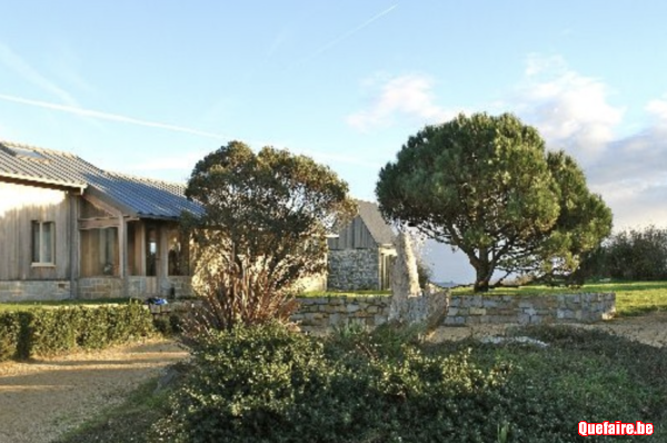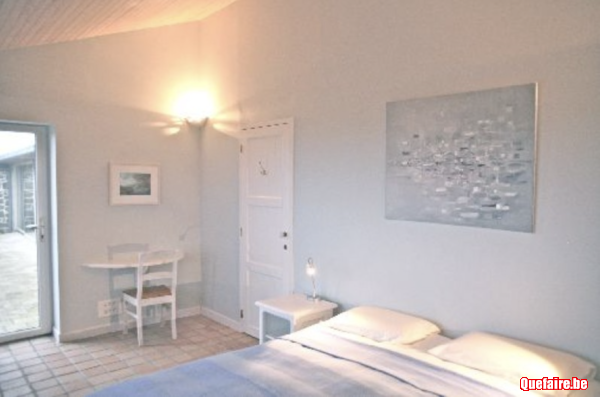 Sur l'ensemble des chambres, quatre chambres sont de plein pied puis une chambre double (ou deux lits simples) avec l'accès par un escalier de meunier, limitée en espace car sous le toit sans armoire, puis une chambre double un peu à l'écart, à l'étage du studio qui profite d'une vue superbe..
