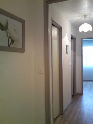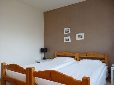 Un long couloir muni de placards (nombreux rangements) dessert les toilettes séparées, la salle de bains avec baignoire et la chambre. Celle-ci comporte 2 lits en 80, et un coin bureau.