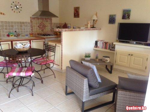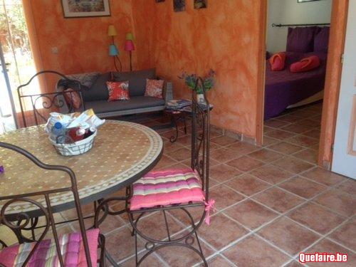 1 chambre (lit 140) - cuisine équipée - bbq - Salle d'eau - Lave linge - tv. Piscine (11X4) à partager avec les propriétaires - Lits de jardin.