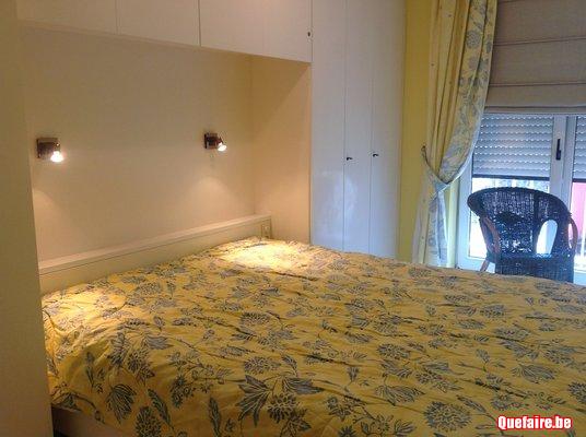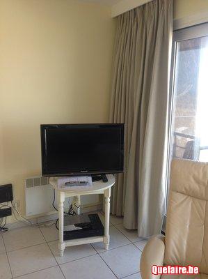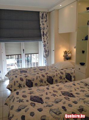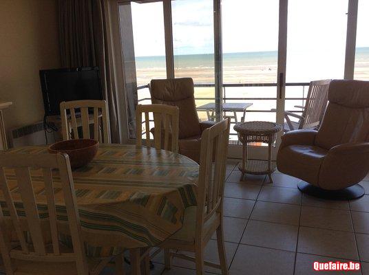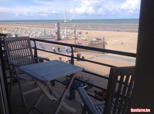 Appartement de luxe sur la digue de 2 à 6 personnes au deuxième étage de la résidence le Royal avec ascenseur et superbe vue mer frontale, un vestiaire, un hall de nuit, une cuisine complètement équipée avec four, micro ondes, percolateur, senséo, grille pain, presse jus, bouilloire électrique, lave vaisselle, frigo, débarras, etc,