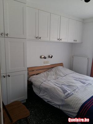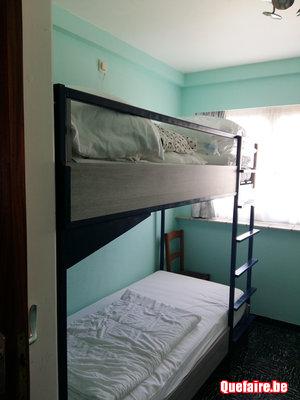 3) 1 lit superposé (90 cm) de 2 personnes - très costaud convient pour adultes également, 2 chaises et pte table, armoire dont penderie.