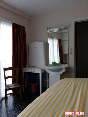 2) 2 lits gigognes (90 cm), 1 lavabo, 1 chaise, 1 table, 1 table à langer murale, armoire dont penderie..