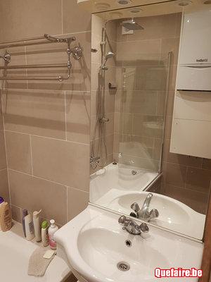 Salle de bain rénovée: bain/paroi douche, lavabo/armoire, chauffage électrique + sèche-cheveux.
