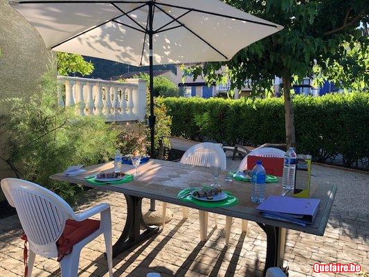 Provence - Magnifique villa dans domaine sécurisé; ent. équipée et climatisée, 4 chbres (2x lit double; 1x lits jumeaux; 1x lits superposés), 8 pers; Centre Var : plaine et Massif des Maures; 30 km Ste Maxime, St Tropez, Tourtour, 50 km Verdon; 60km les îles d'Hyères, Cannes; 3 piscines, espace balnéo chauffé entre saisons, tennis, beach volley; tv tnt, Internet Wi-Fi et services parahôteliers à la demande; Tarifs indicatifs (Cf grille : prix max. Réductions possibles si occupation de 6 personnes ou moins, en cas de séjour long (àpd 2 semaines), de réservation précoce (-20% avant le 28 janvier) et surtout hors juillet-août). Plusieurs services extras disponibles sur demande (kit linges, chargement véhicule électrique, lit et chaise bébé,. ) Nombreuses animations en été (familiales, ados, enfants avec le club "les minions",. ). Très calme hors saison : Idéal pour randos pédestres, cyclistes,. et la découverte de la nature grandiose des environs!