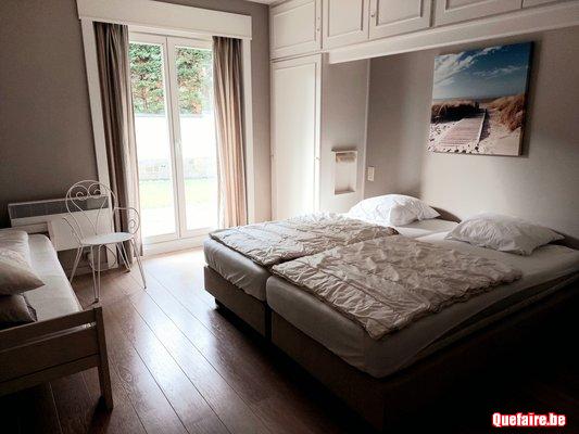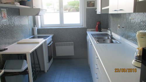 terrasse avec meubles jardin - tv, l lit et chaise bébé, cuisine équipée de lave-vaisselle, micro ondes, table de cuisson vitrocéramique, percolateur -bouilloire - lave linge et séchoir-